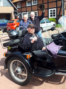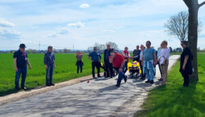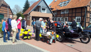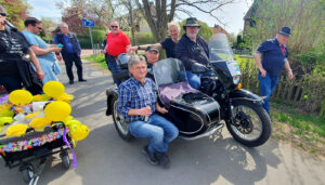 Am Samstag, den 22.04.2023, trafen sich gegen 13:00 Uhr zahlreiche Meerbiker zum Klootschießen bei Günther und Heidi in Wunstorf-Luthe. Die beiden Bollerwagen, je einer für die Männer und die Frauen, wurden wenige Tage zuvor geschmückt und mit allerlei alkoholischen Getränken und Snacks ausgestattet.